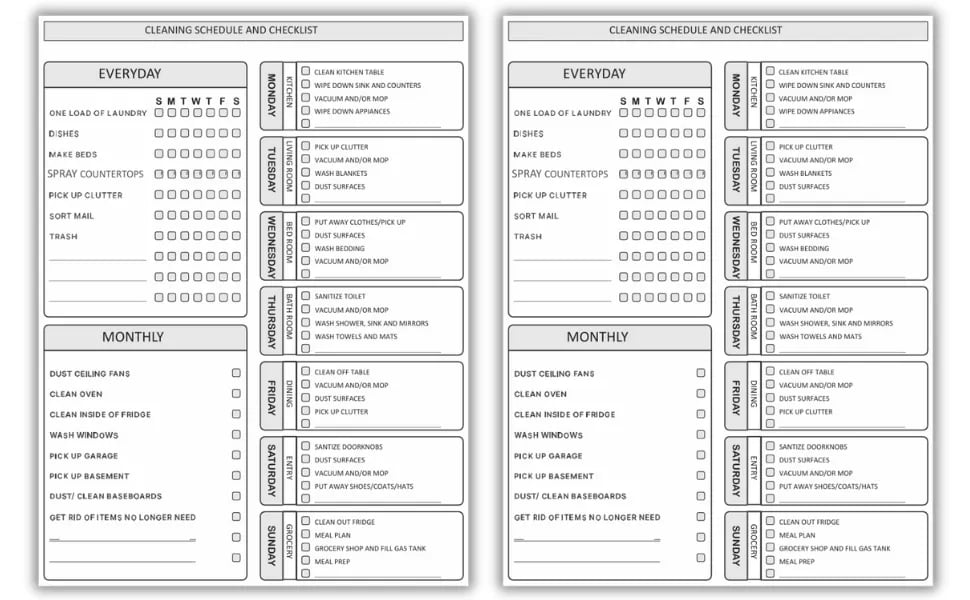 📝Daily Weekly and Monthly Cleaning Schedule📔